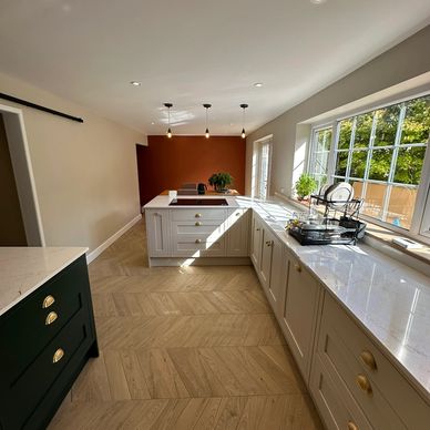This combined kitchen and living area allowed us to showcase our skills, delivering a flexible kitchen-dining space for living and entertaining.